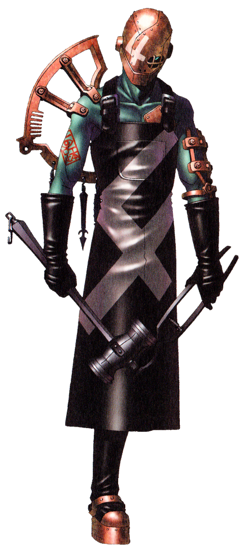 | Guillotine Fake | physical. A ceaselessly sharp mandala is shaped into a guillotine’s blade, plundering the souls who are caught within its invisible gale as it cuts them apart endlessly without killing them. |