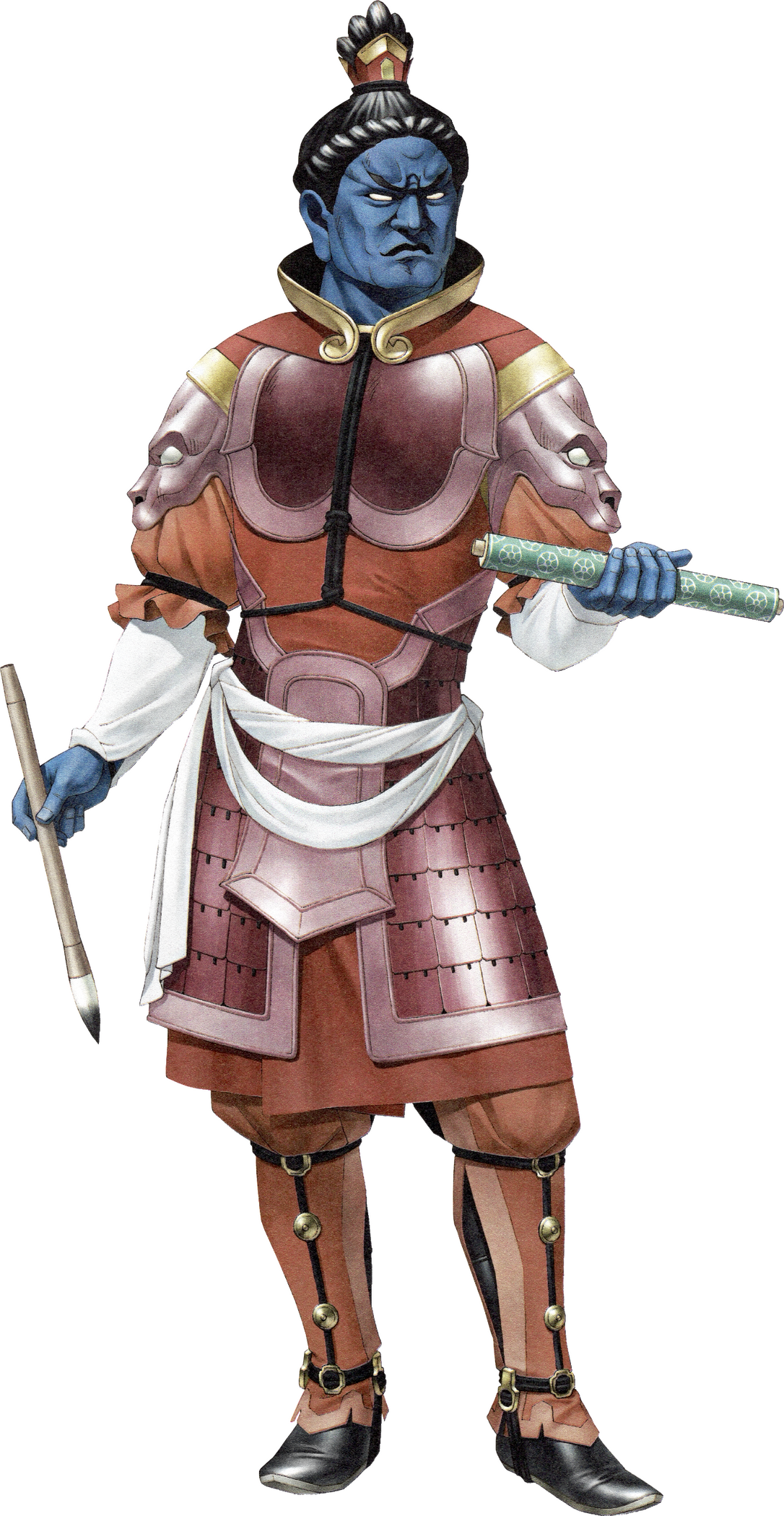 YAMA. "In Hindu lore, he is a god who manages hell. He has been incorporated into Buddhism as well, where he is well-known as King Enma. He was originally born human and had a twin sister named Yami. Yama died first, which filled Yami with sorrow. The gods created day and night for her to forget Yama. As the first person to die, Yama was given the role of guiding the deceased to the land of the dead, but he eventually began punishing them according to their deeds while alive. Originally, the land of the dead consisted only of heaven, but through Yama's work, hell was born over time and he came to manage it."