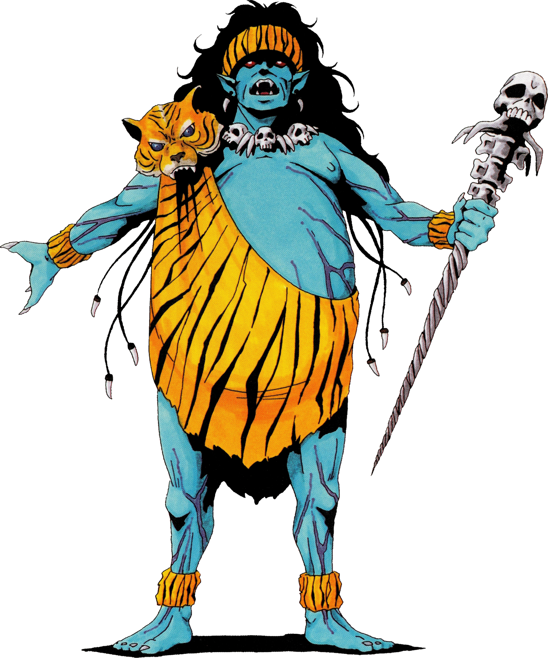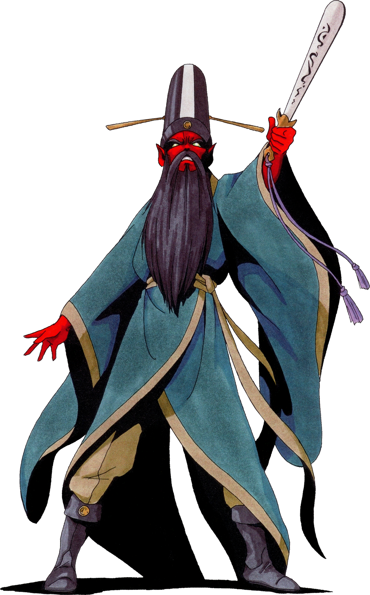 YAMA. "In Hindu lore, he is a god who manages hell. He has been incorporated into Buddhism as well, where he is well-known as King Enma. He was originally born human and had a twin sister named Yami. Yama died first, which filled Yami with sorrow. The gods created day and night for her to forget Yama. As the first person to die, Yama was given the role of guiding the deceased to the land of the dead, but he eventually began punishing them according to their deeds while alive. Originally, the land of the dead consisted only of heaven, but through Yama's work, hell was born over time and he came to manage it."